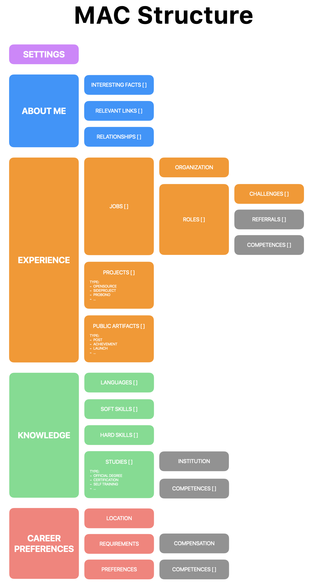 Reconociendo la necesidad de un enfoque developer-friendly, Manfred apostó por JSON Schema como la piedra angular de su plataforma al crear el MAC, un formato estándar y open source para definir y compartir currículums. Al ofrecer a los desarrolladores sus datos en formato JSON ofreciendo además el JSON Schema (el MAC) como el mapa para usarlo, Manfred transformó la forma en que los profesionales interactuaban con su propia información. Este enfoque innovador no sólo permitió a Manfred diferenciarse de sus competidores, sino que también propició un nuevo nivel de transparencia en los procesos de contratación al ofrecer un enfoque basado en datos estructurados y accionables con enormes capacidades de interoperabilidad.
